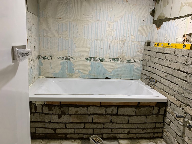 타일은 뜯어내면 벽면이 고르지 않아, 밑바탕 작업을 하고 타일을 붙여야하는데 이렇게 작업하면
