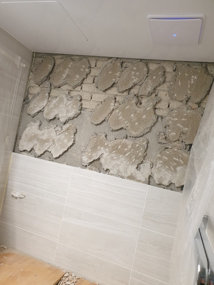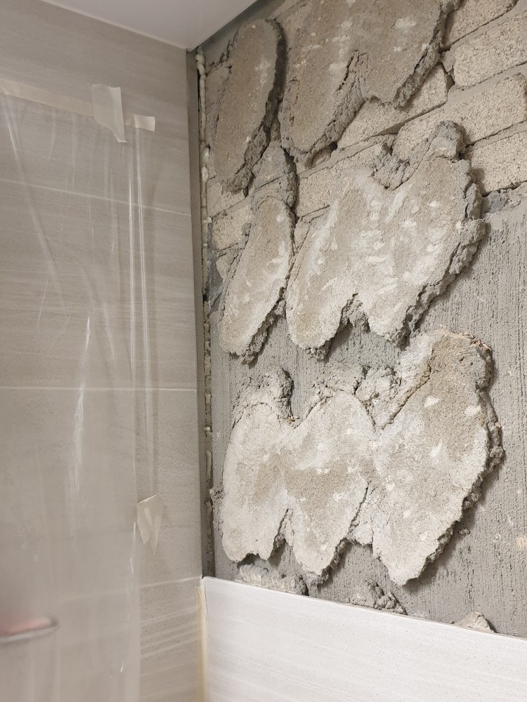 욕실벽 타일 불량으로 타일을 뜯었는데