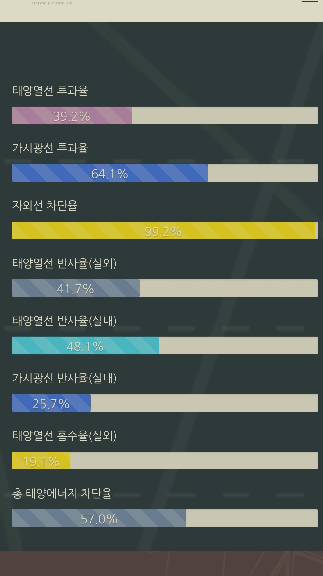 혹시 저 수치중 가시광선투과율이 내려갈수록 열파확률이 올라가는건가요?