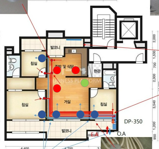 방 거실 급기 + 부엌 배기 하시면 되는데, 그림은 저녁에 드릴께요.