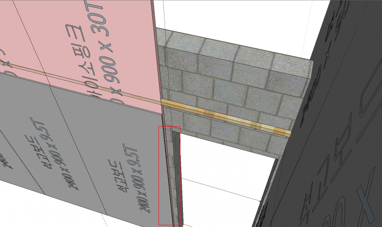 아이소핑크 30T + 석고보드 9.5T 시공. 대략 40mm의 두께