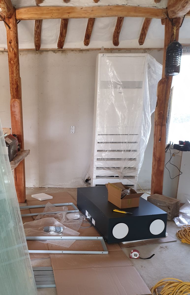 바닥은 전기탄소필름 일부 깔고 나머지는 냉온풍기로하고