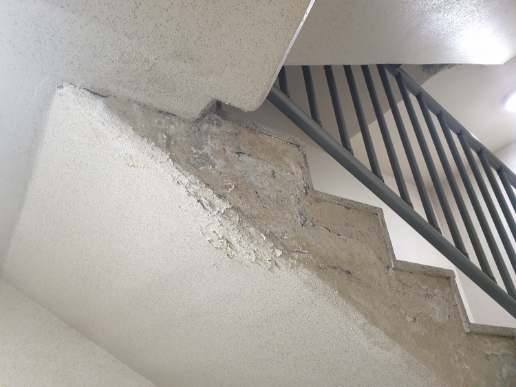 원인은 (이 사진만으로) 알 수 없으나, 물이 스며들어서 페인트가 벗겨진 것입니다.