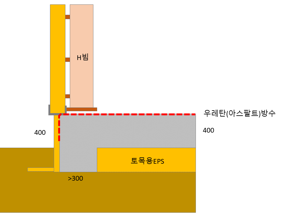 h빔 안쪽 외벽에 eps 나등급 판넬 75T(난연2급)+석고2P마감 예정입니다.