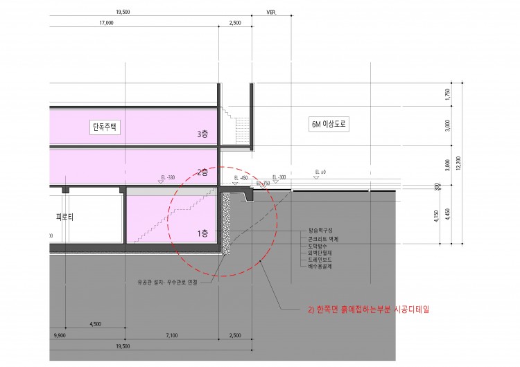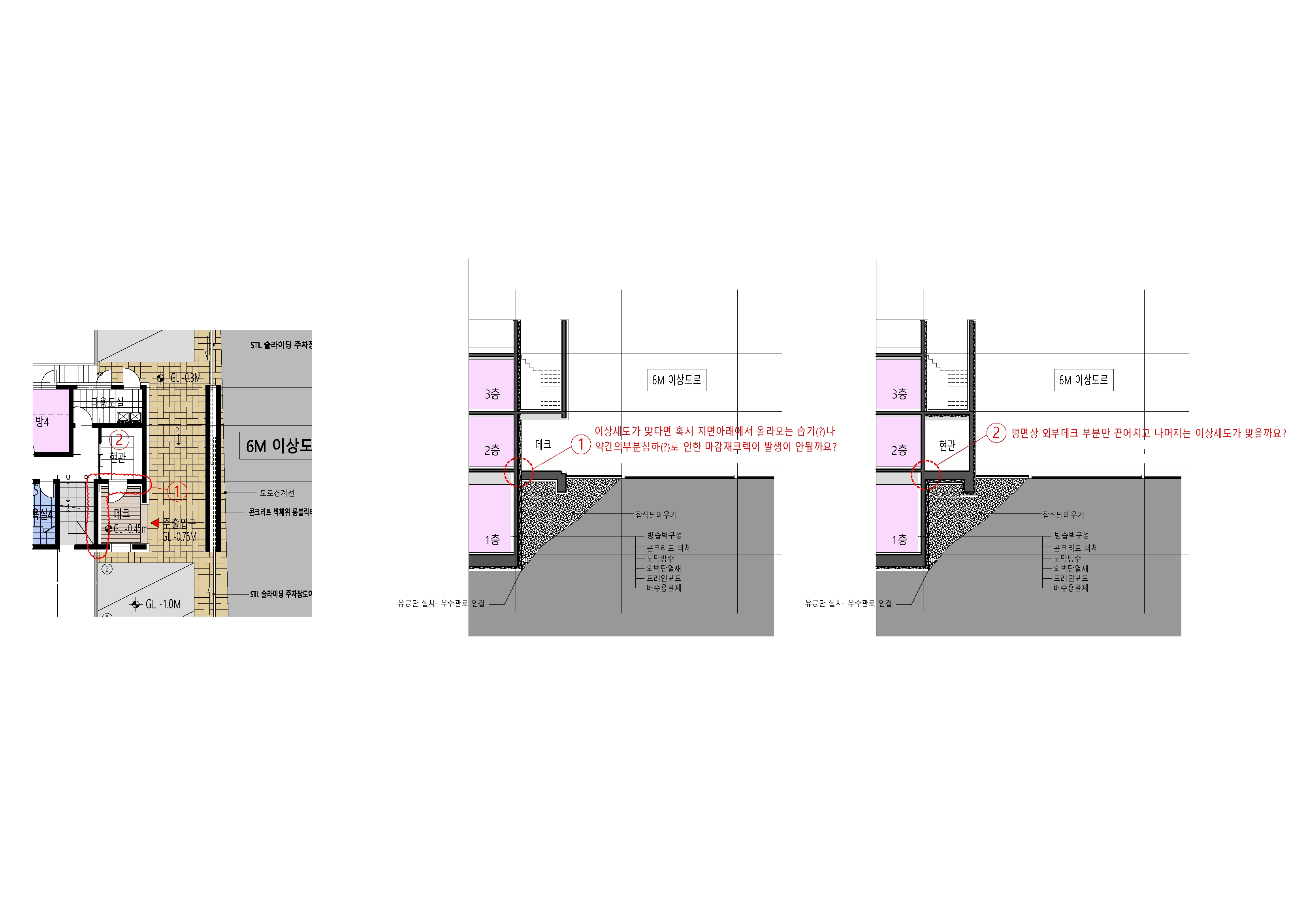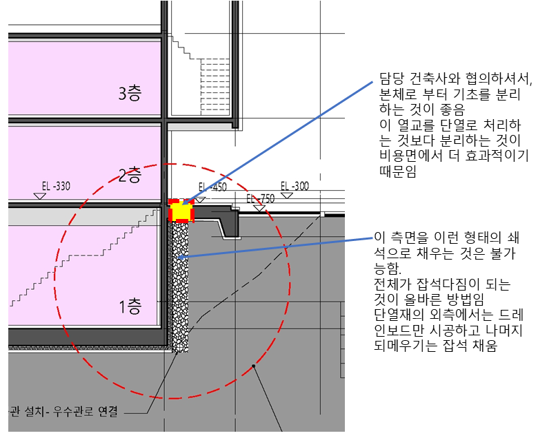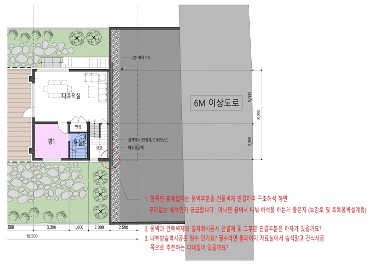 그리고 오지랍입니다만, 2층 기초와 지하 외부 처리에 대한 추가 의견을 드립니다.