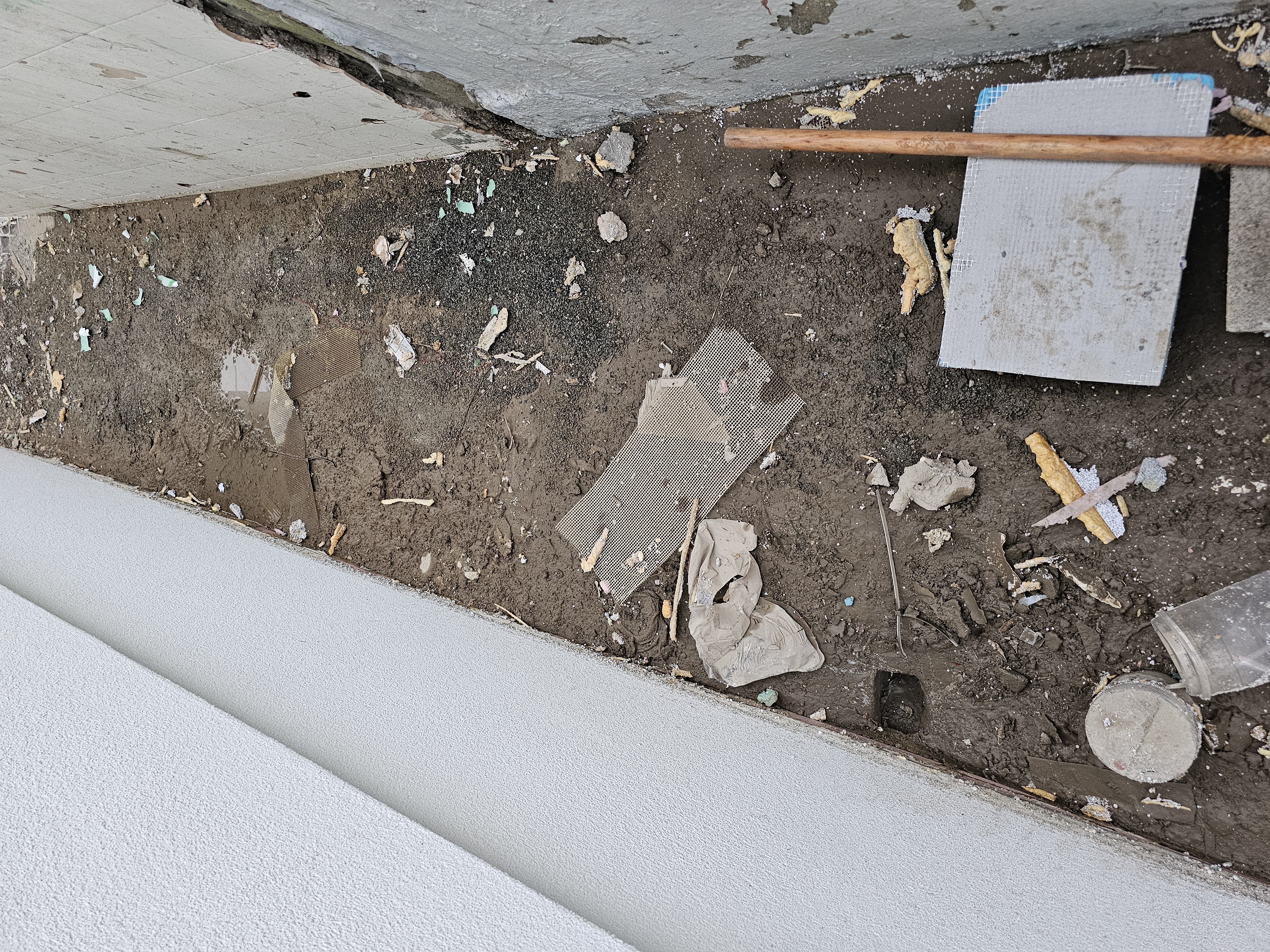 해당 화장실은 2층인데요. 이중배수구를 만들어서 슬라브에 방수를 한 상태입니다.
