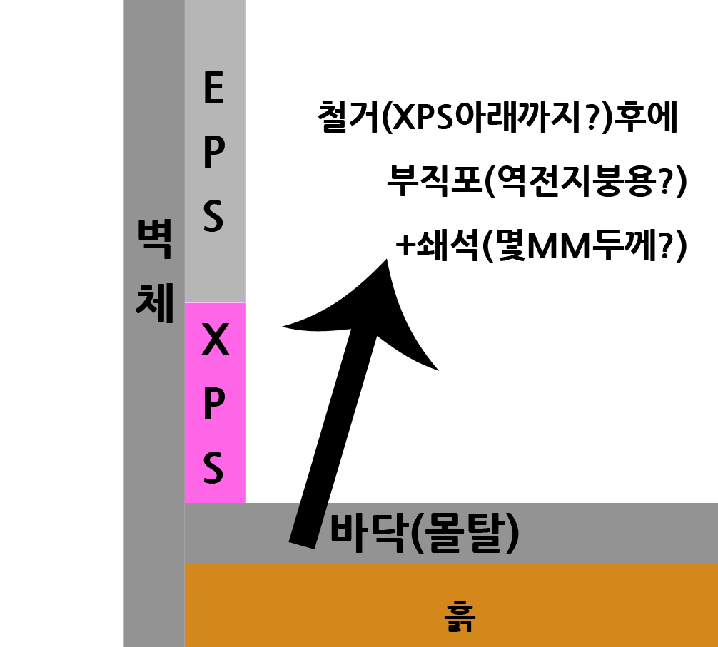 질문2 현재 벽체단열잭 기초보다 조금 나와있어서 물끊기가 되어 있는데요. 기초벽체에 단열재를 부착하게 되면 벽체단열재보다 더 튀어나오게 됩니다. 물끊기도 고사하고, 누수의 위험마저 있는데요. 부족한 제판단으로는 역전지붕을 하면 벽체에 시멘트보드를 부착하게 되니 단열재가 튀어나온 위부분에 구베를 잡고 시멘트보드를 덮고 단열재와 시멘트보드가 만나는 부분에 (잡자재에서 판매하는)실리콘등으로 마무리를 하면 될것같은데요. 이에 대한 조언 부탁드리겠습니다. 참고로 외부벽체는 스타코 마감이라고 하시네요.