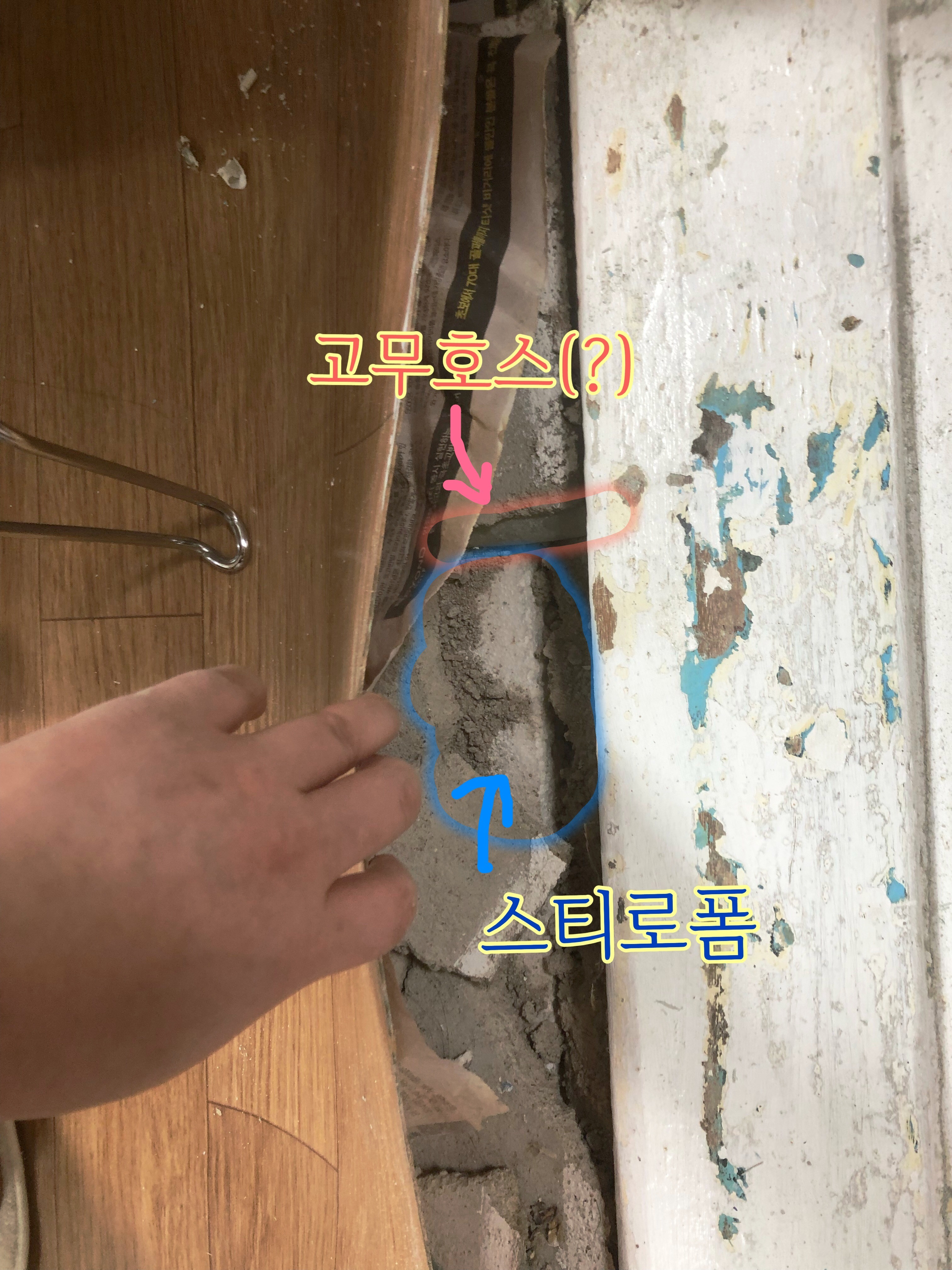 아직 입주 전이고 주중에는 타지라서 가보지도 못하는 상태라 주말에 시공하신 분이랑 같이 가볼 수 있으면 가보랴고 해요.. 거실이 들뜬곳과 들뜨지 않은 곳이 있어서 밟으면 높이차가 있었고 그저께 장판을 들었다가 엑셀 파이프와 단열재?같은 것을 발견했습니다.