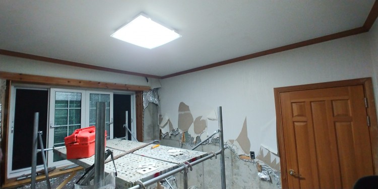 열반사단열재 + 석고보드 2p + 벽지 마감되어있습니다.