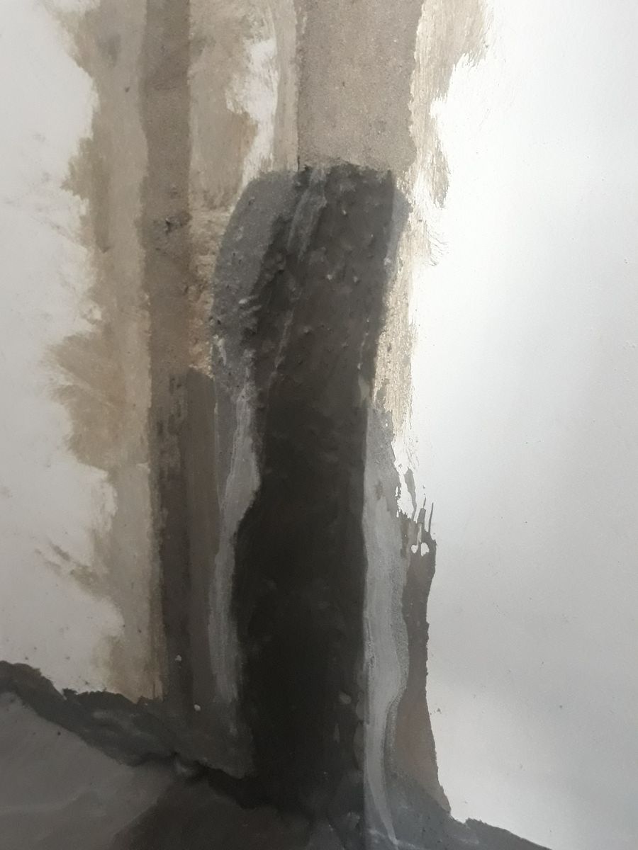 바닥과 벽이 판나는 곳에 물이 송글송글