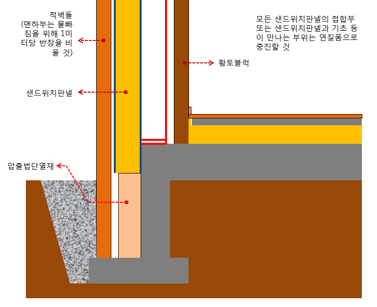 현재 평지붕에 누수가 있고 내부에 곰팡이가 창궐한 상태이므로 전체적으로 보수하여 사용하고자 합니다. 여러 자료를 검색하던 중 아래 링크의 글을 통해 대략 감을 잡았습니다만, 제 상황에서 기초와 외벽이 만나는 부분을 어떻게 해결해야할지 궁금합니다.