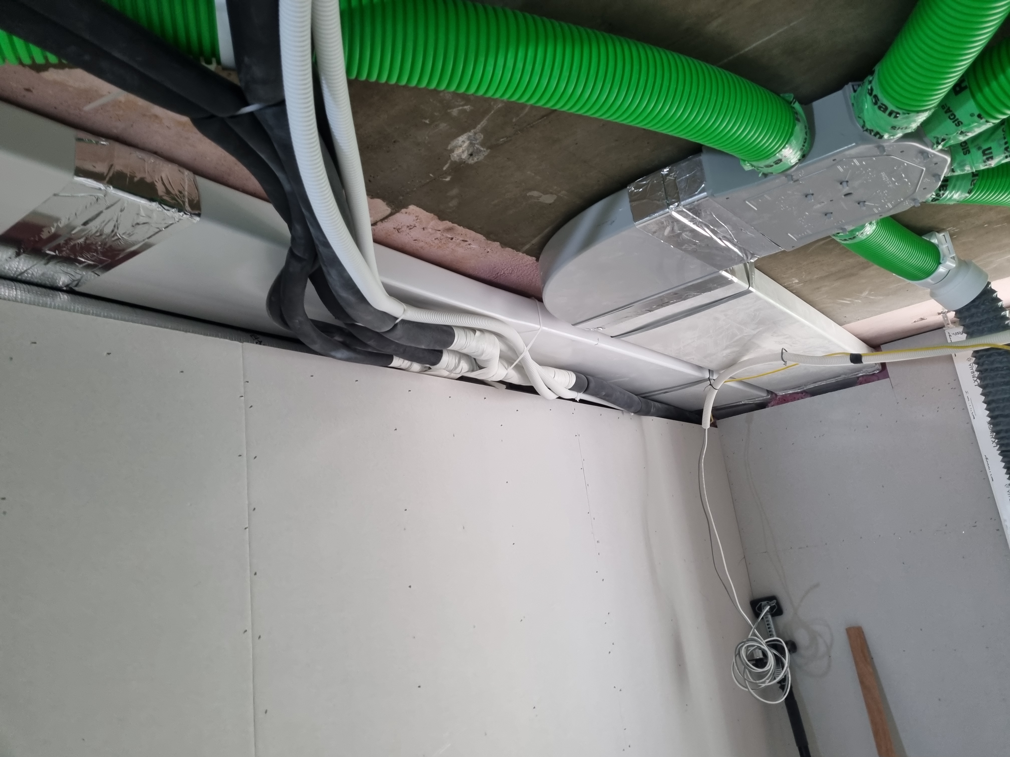 내단열 일부 구간에서 공조기와 에어컨 배관 때문에 천장쪽에 단열제가 전혀 안 들어 갔습니다.