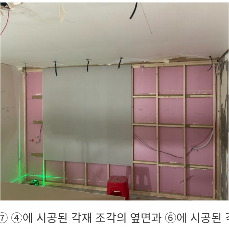 그런데 정작 공사하는 목수분도 전기선 배선 작업 때문에 어쩔수 없이 각제틀 공간이 있다 이렇게 말하고 있습니다.