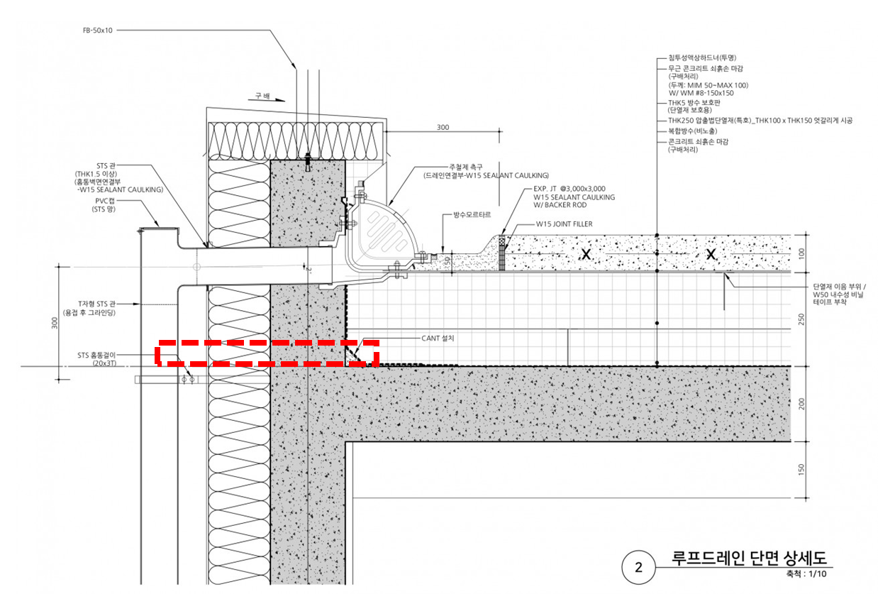 역전지붕에서 측면배수를 선택할 때는.. 단열재 하부면에 보조 배수구를 만들어야 합니다.