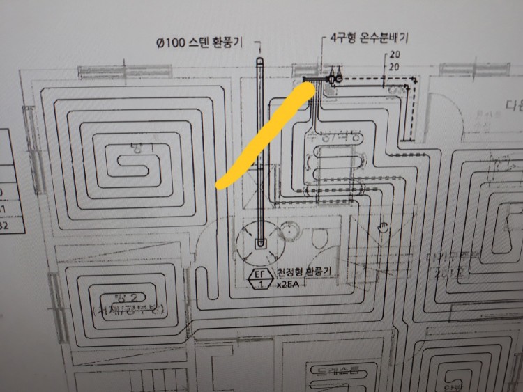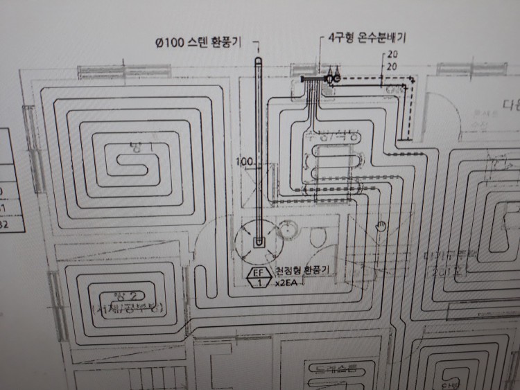 - 제가 보여드리고자 한 것은 메탈라스였으며, 거기는 욕실(화장실)바닥으로 난방배관이 연결된 부위입니다. 욕실 바닥이 방바닥보다 약 10cm정도 낮기 때문에 배관이 아래로 내려가는 부위라서 그렇습니다.