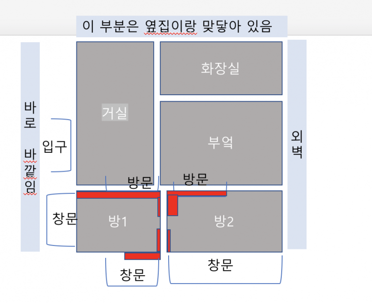 그리고 문 옆의 마감도.. 실크벽지(PVC벽지) 보다는 합지 벽지를 사용해야 하며, 만약 사진처럼 결로가 지속되는 부위라면.. 종이를 풀로 두껍게 대어 (마치 단열재처럼) 붙이는 방법이 최선입니다.
