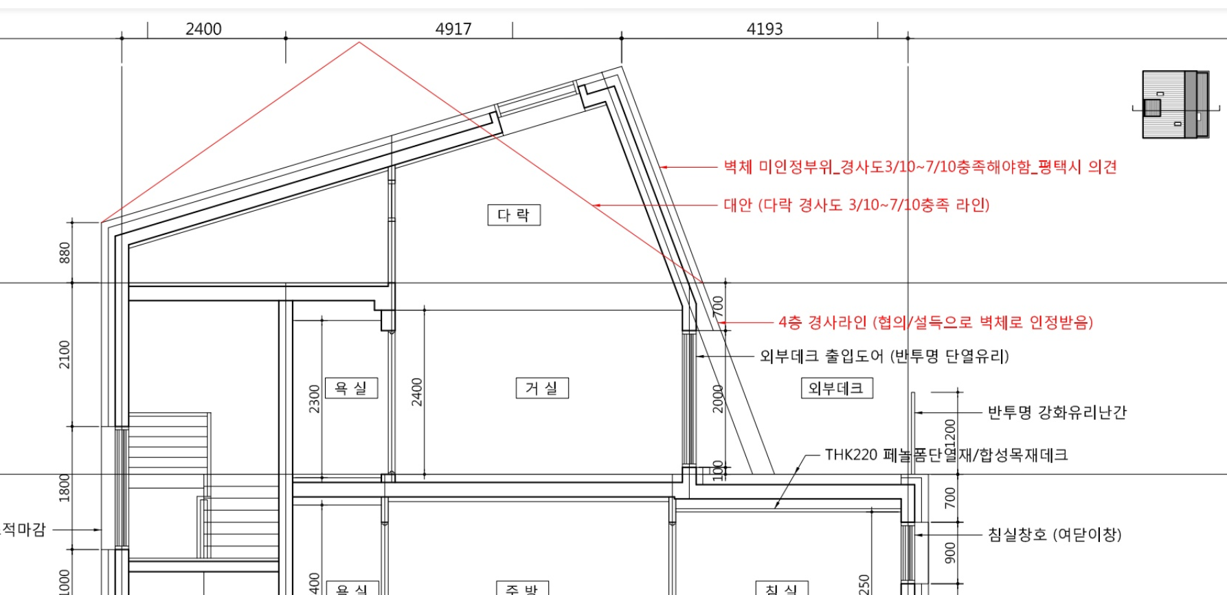 2. 이의제기후 담당자 제시안 4층은 허용하되 누다락 벽체는 불허 한다고함