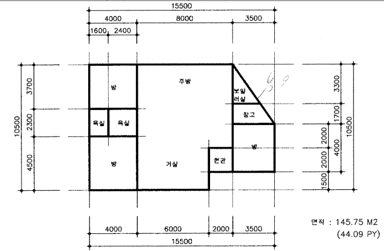 처음 집을 구입할 때에 어째서 거실과 부엌 공간이 넓은데 지지하는 기둥이 없어서 이상하다 생각했거든요 (첨부한 그림이 집의 배치도입니다. 구청에서 받았어요).