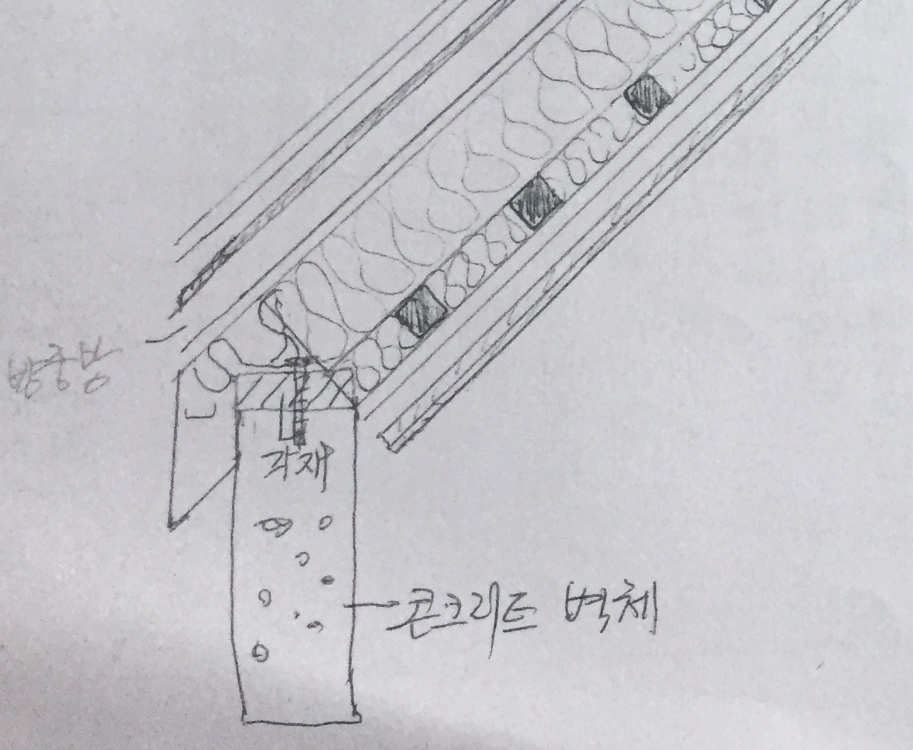 콘크리트 벽체와 연결되는 부분은 아래와 같고요.