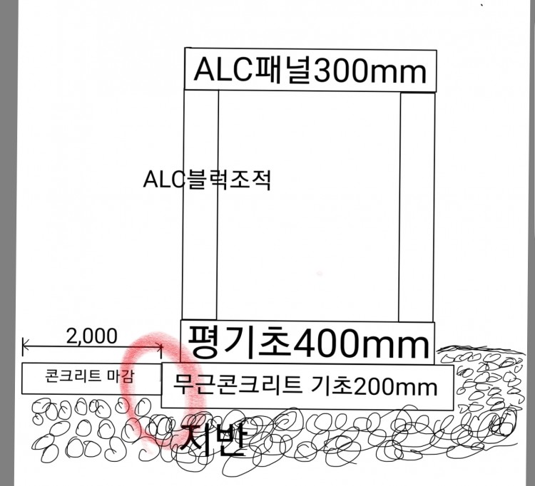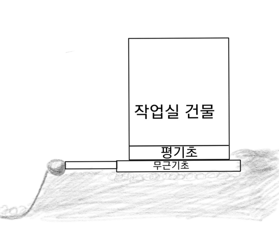 위사진 처럼 뒤쪽(북쪽)은 무근기초 위로 흙이나 쇠석을 깔아 동결심도 깊이를 충족 할듯 한데