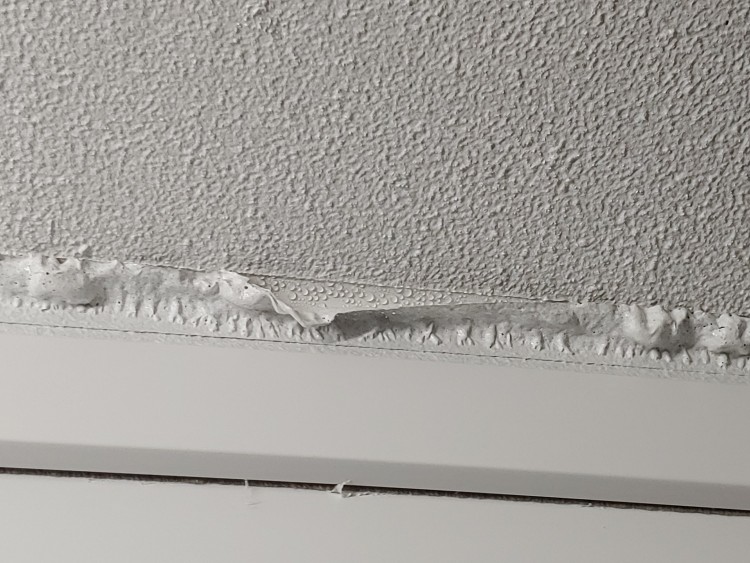 샤시 코킹한 부분은 탄성코트가 다 들떴고 천정에도 물방울이 생겨서 떨어지고 있네요.