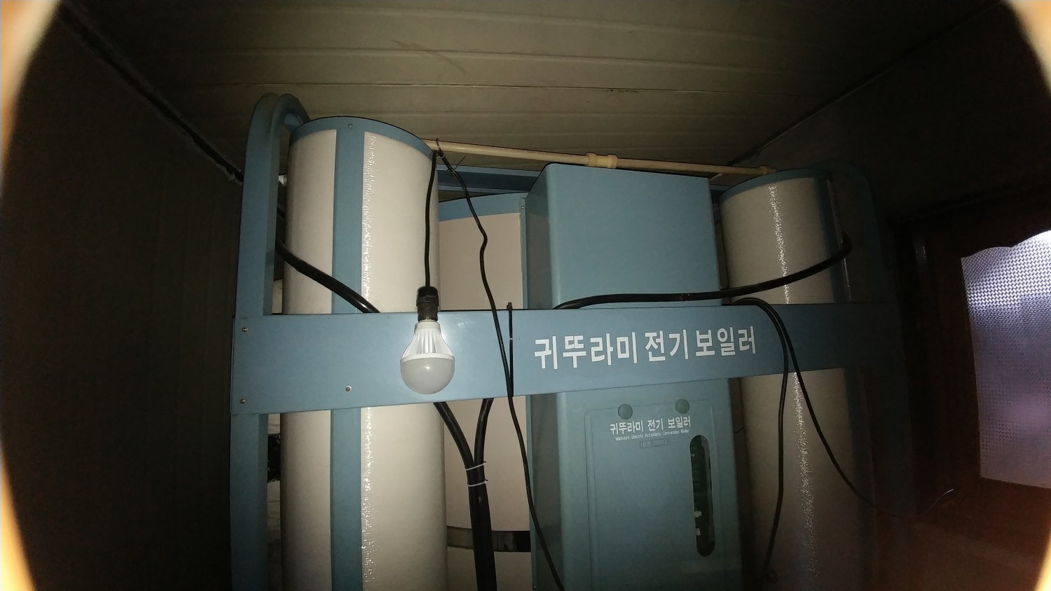 처마 끝 쪽에 심야 전기보일러 실입니다.