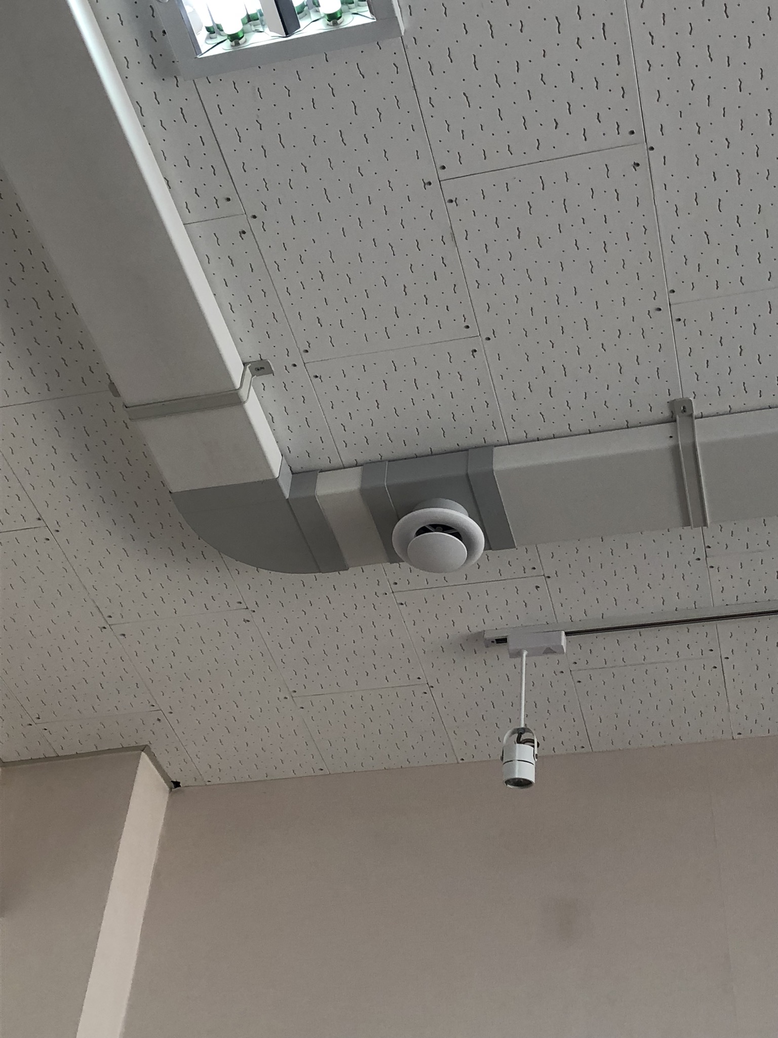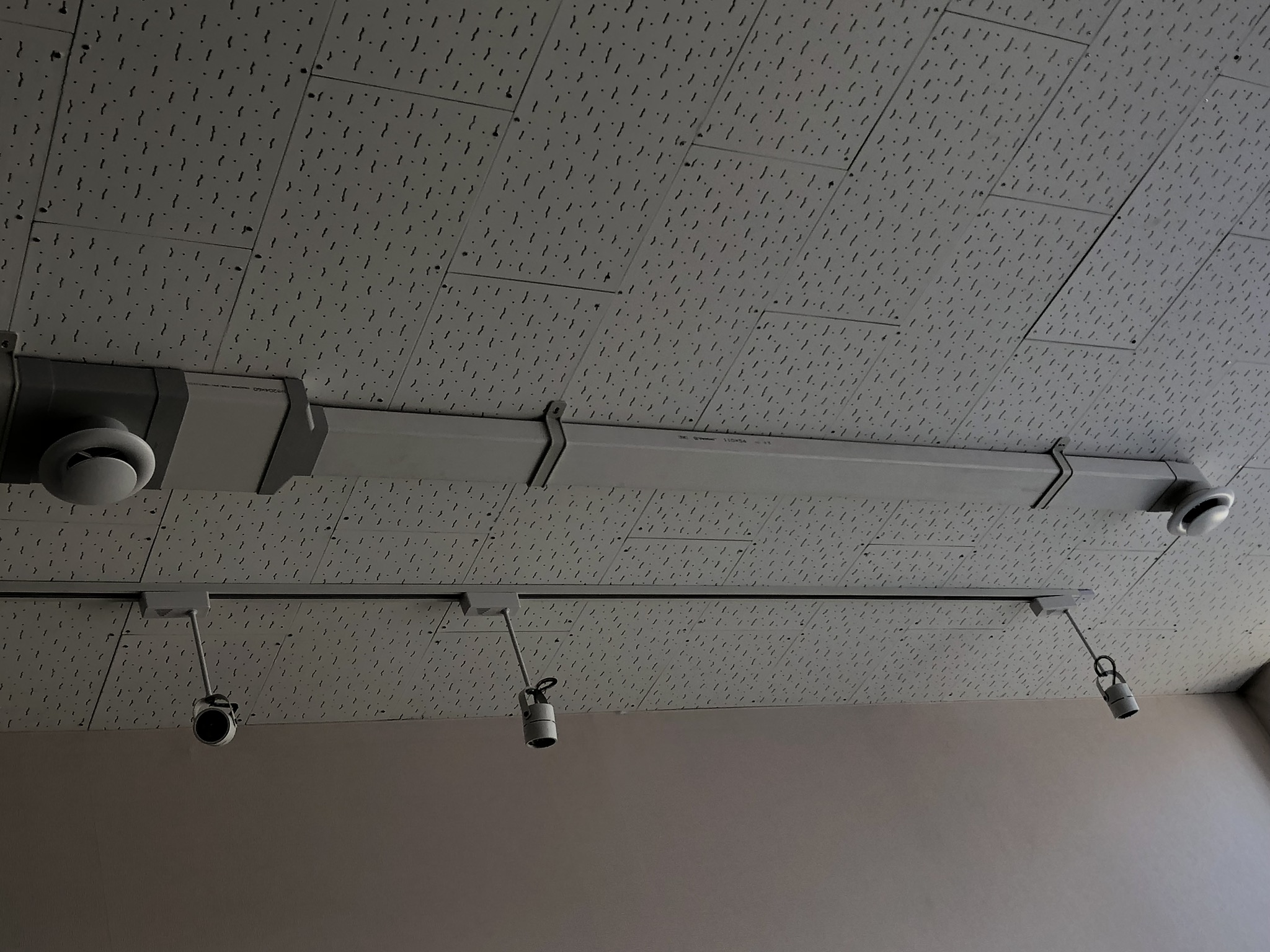 만일 벽체 배관이 되어 있는 공간이라 천정을 손데기가 어렵다면 사진의 덕트를 천정 밑에 따라 가는것도 좋을것 같습니다. 물론 인테리어와 색상등 일반 적인 가운데 등과 일반적인 벽지가 아닌 카페분위기 같은 독특한 인테리어라면 좋겠지요.