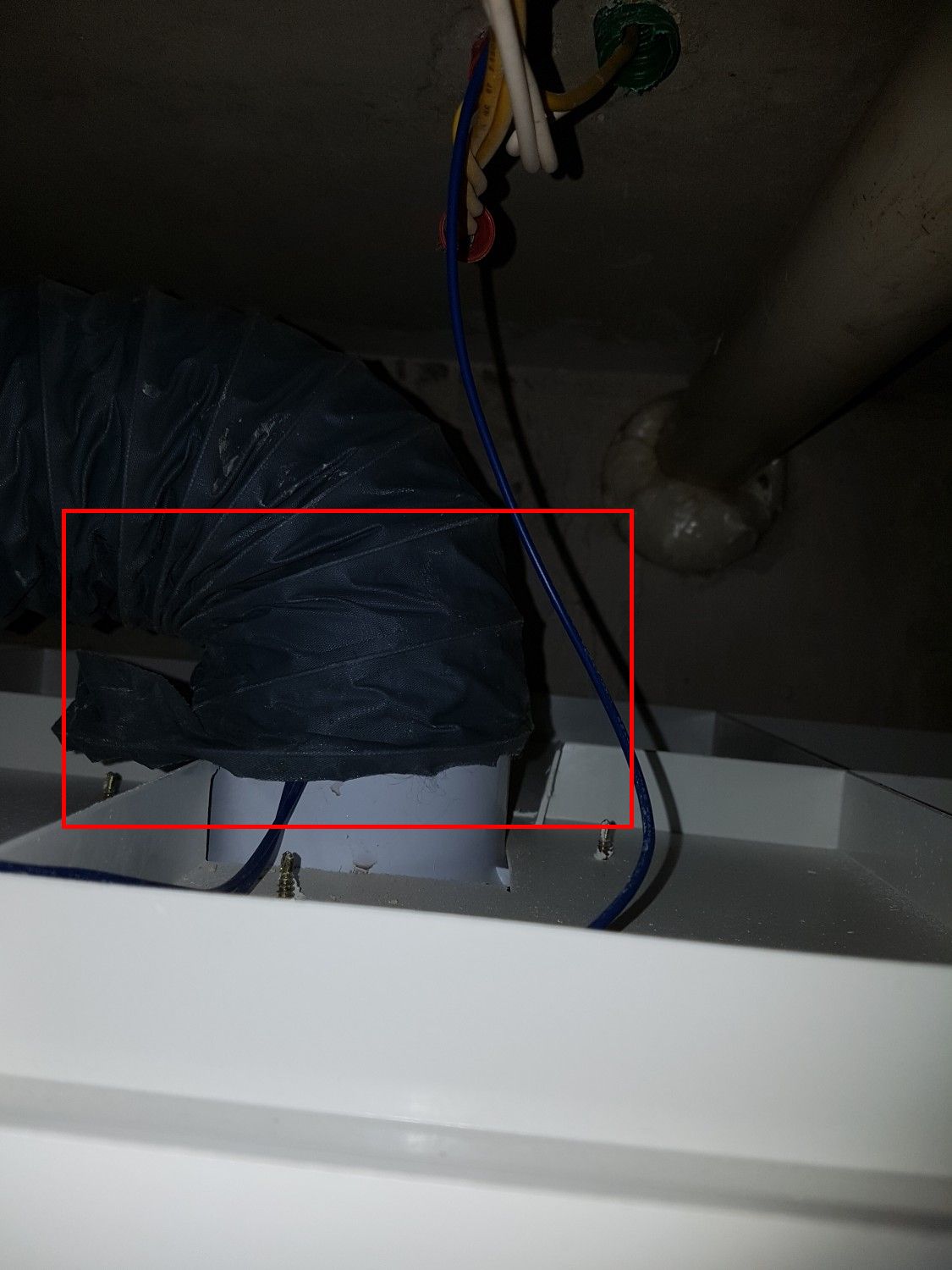문제는 환기구와 그 연결배관을 단단히 고정시켜야 하는데, 아무런 조치가 되어 있지 않습니다.
