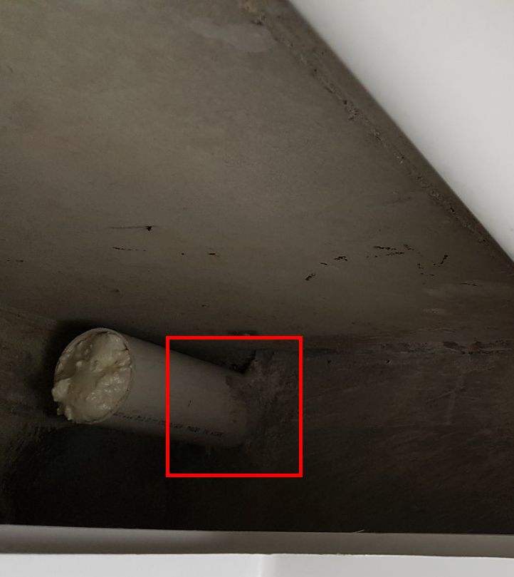 배관과 콘크리트 사이에 틈이 보여서는 안됩니다.