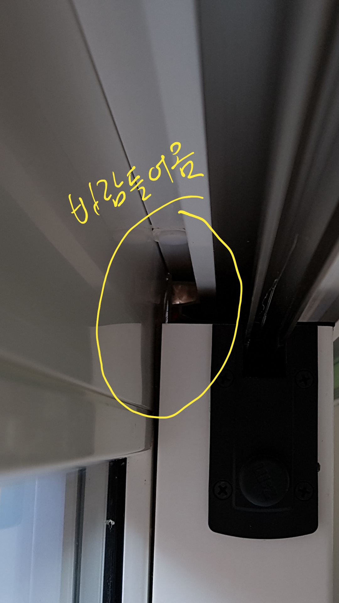 저희 집 창호를 엘지랑 독일 제품이랑 둘 다 시공하시는 분이 시공을 했는데요. 엘지창은 시공을 해 놓으면 바람이 들어온다는 항의가 많이 들어온다고 해요. 근데 창이 원래 그런 걸 별다른 방법이 없다는 거죠. 그래도 저희 집은 풍지판을 설치를 해 주셨는데 여긴 안 보이는 것 같네요. 시공사에 연락하면 아마 설치해줄 것 같습니다. 그래도 풍지판 달아 놓으면 바람이 훅 들어오는 그런 느낌은 없을 겁니다.