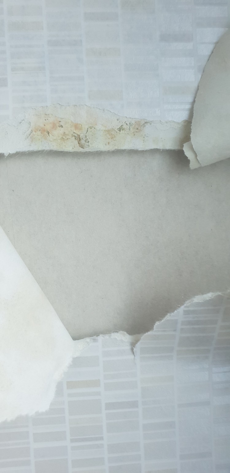 벽지는 실크벽지고 겉이 얼룩덜룩해서 뜯었더니 벽지 안쪽이 저렇게 되어있네요.
