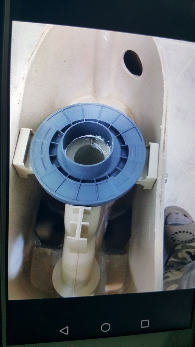 변기설치시 공간제약 등 여러이유로 정심트렌치가 정확한 위치에 설치되지 않아 배관과 변기사이에 틈이벌어져 있을것입니다