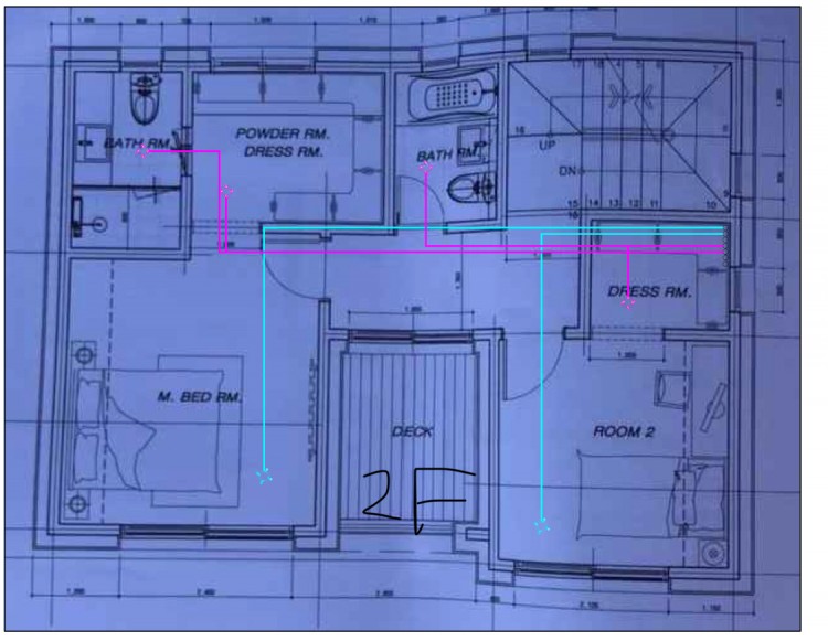 도면상 2층 안방과 파우더룸이 벽으로 구분되어있지만 모두 터놓은 상태고요.
