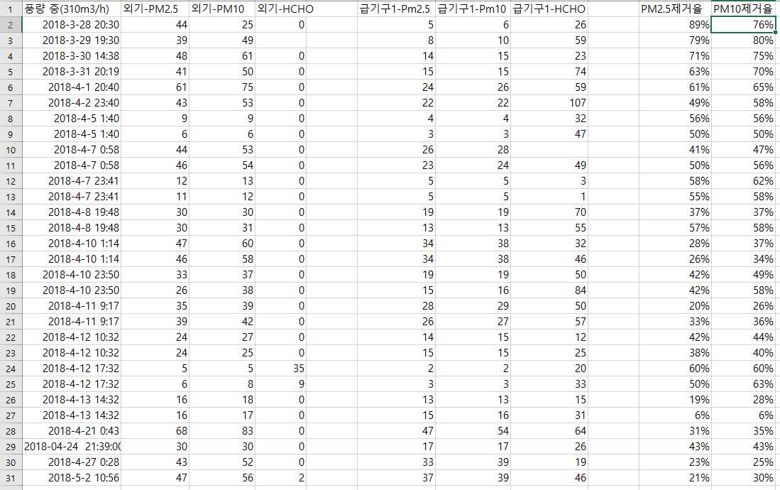 열교환기를 통해 미세먼지가 들어있는 공기가 지속적으로 들어오니 공기청정기를 2~3시간을 돌려도 미세먼지 수치가 30mg/m3아래로 잘 떨어지지가 않았습니다.