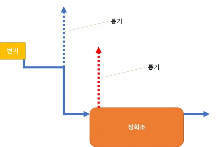 오수배관과 연결된 통기관을 설치할 경우 추가적인 통기관 (