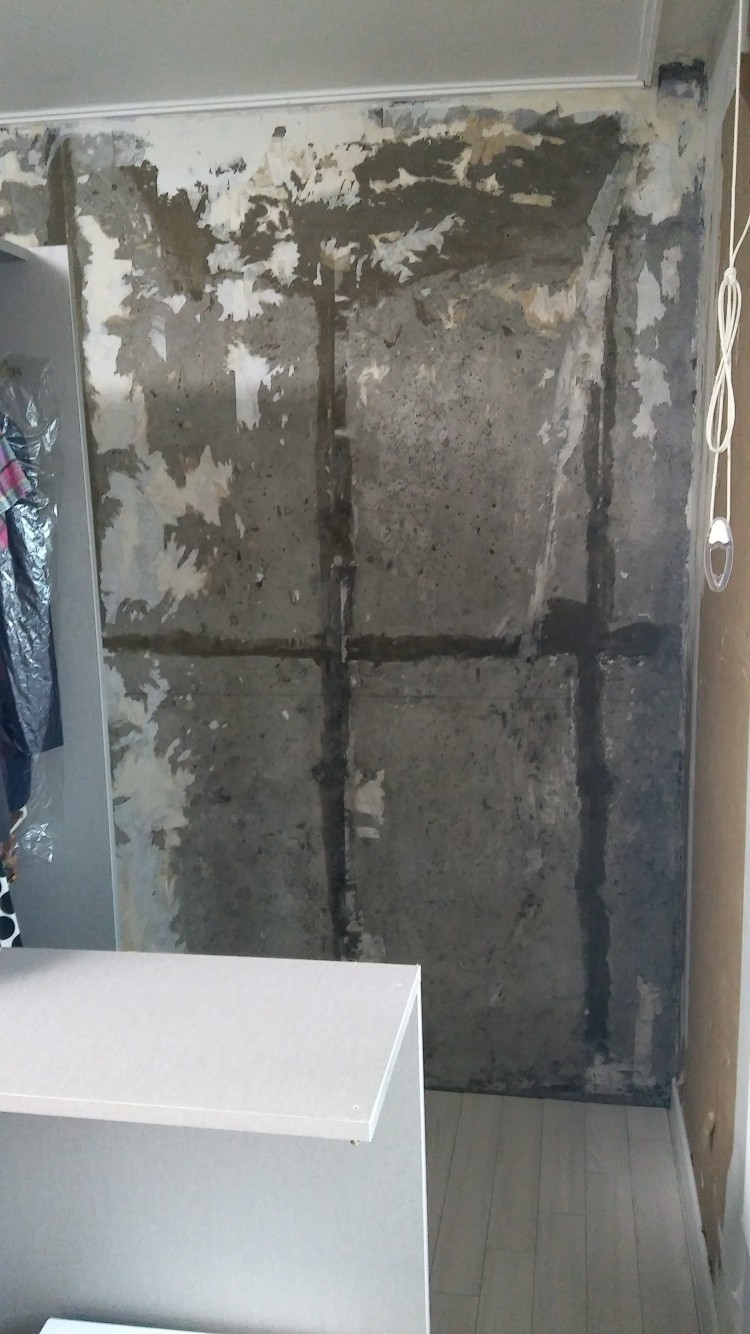 붙박이장뒷쪽에 결로가심해 장을해체했고,도배지는 뜯어놓은상태예요.
