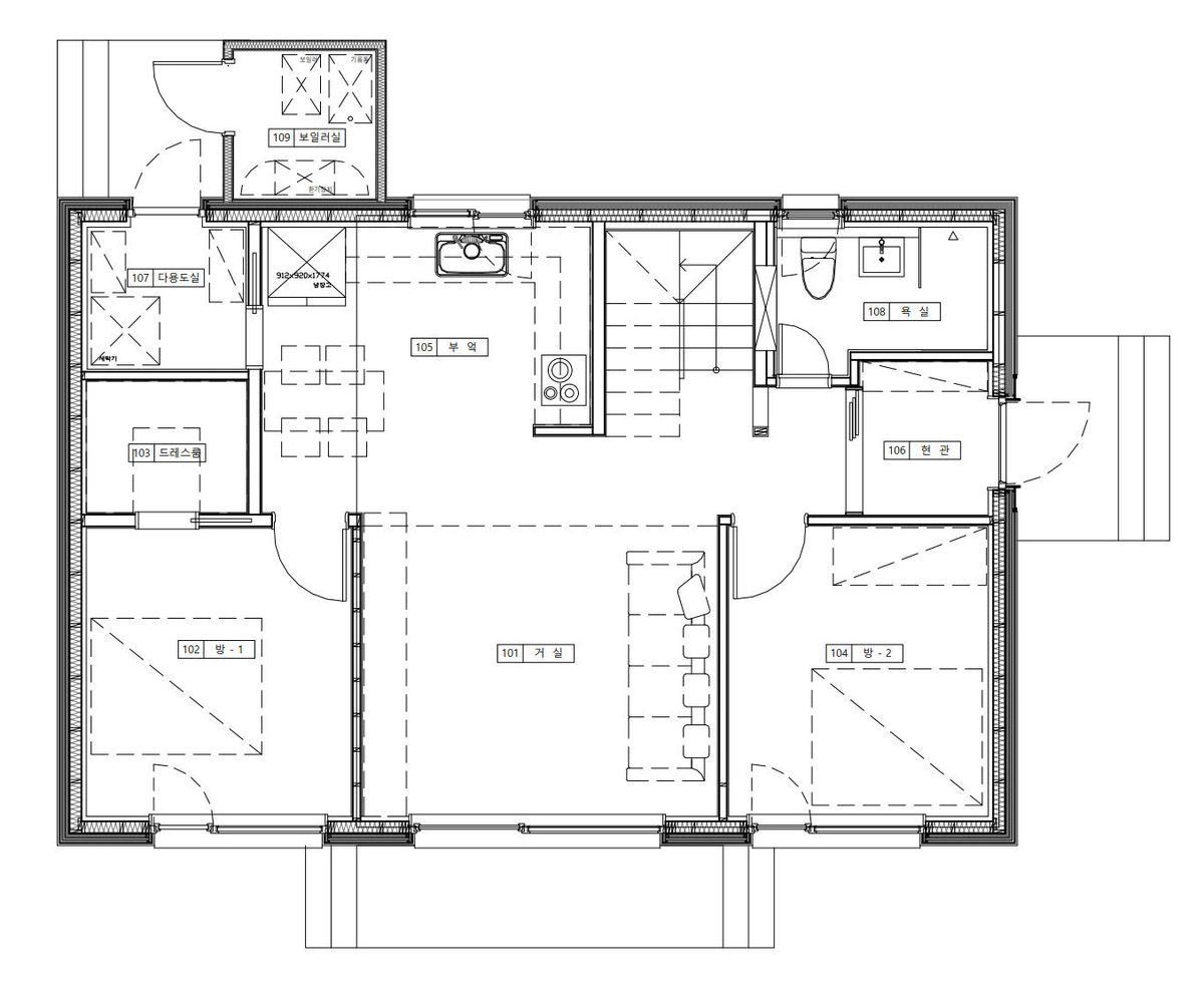2. 만약 가능하다면 관리자님을 통해서 업체를 소개를 받을 수 있을런지요? 지금 다시 그려보는 그림은 위 보여주신 표준주택 24평형 도면을 바탕으로 수정 -> 시공 입니다.