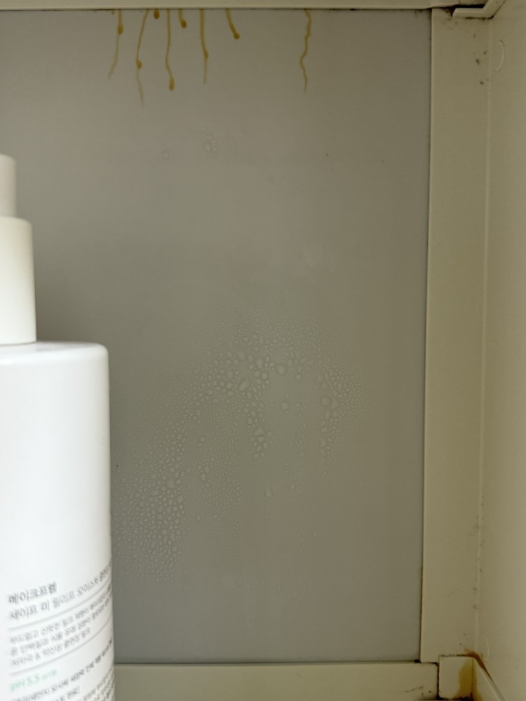 겨울마다 4~5개월을 매일 씻고나서 벽면을 스펀지나수건으로 물기를 닦고 나와도 조금만 지나면 변기쪽이나 벽에 사진에 보시다시피 물이 맺혀있습니다.(며칠만 안닦아도 실리콘 부위에 보라색 곰팡이가 피어요..)