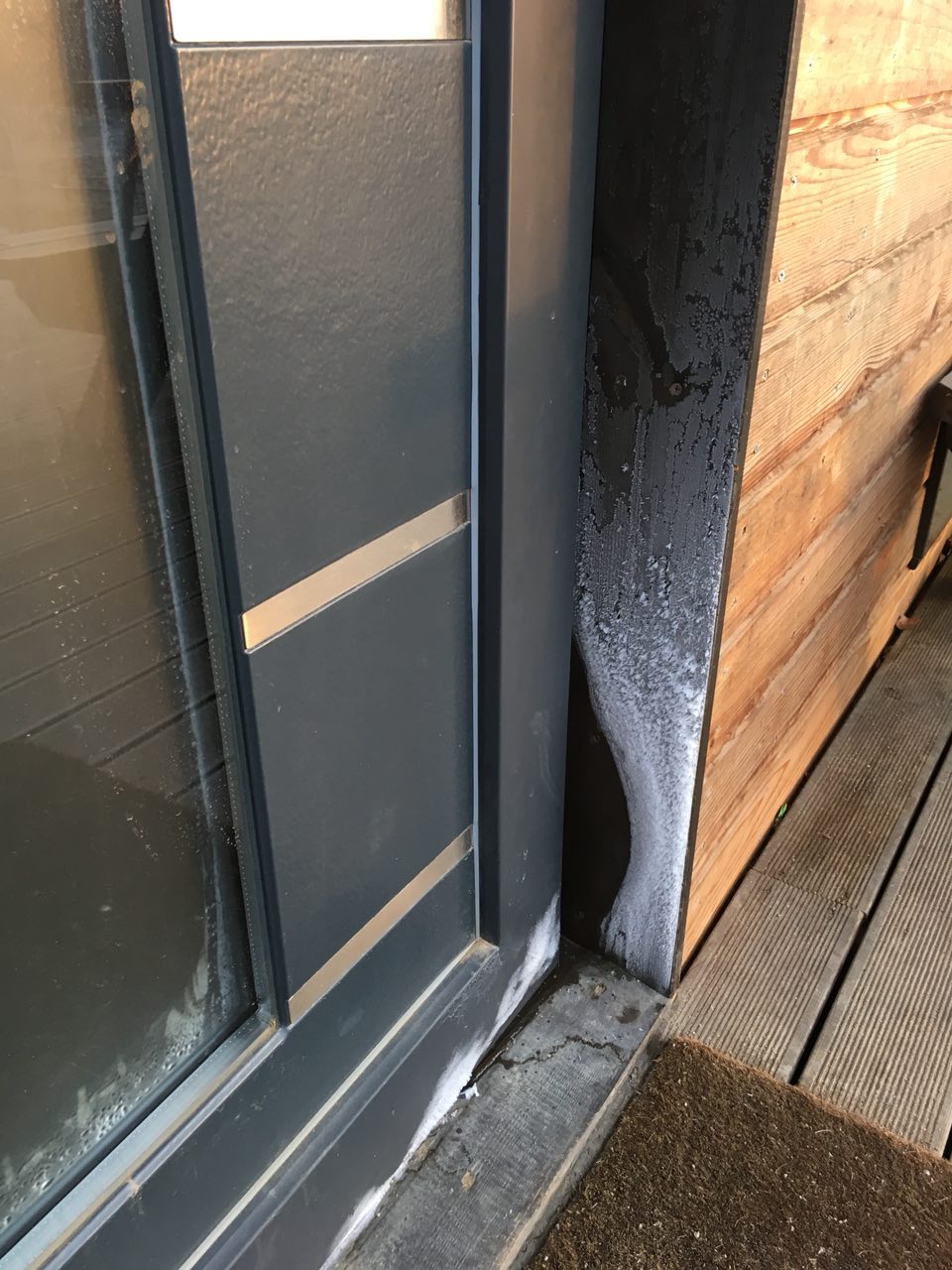 현관문과 시스템도어 주변 문틀에 저렇게 성에가 끼었네요.