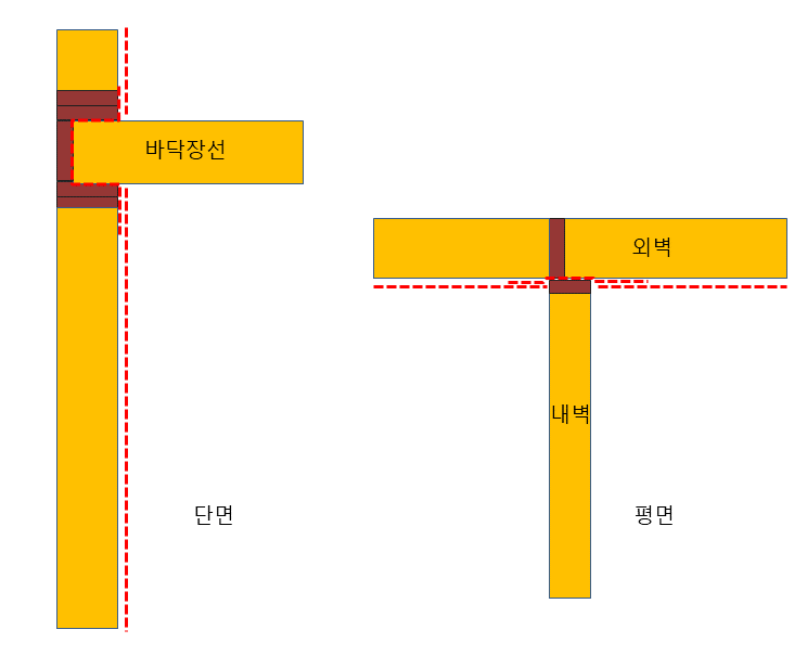 이렇게 시공하는 사례가 있는지 구조적으로 외벽-내벽 연결부 교차 시공이 불가하여 문제가 발생할 소지가 있는지 궁금합니다.