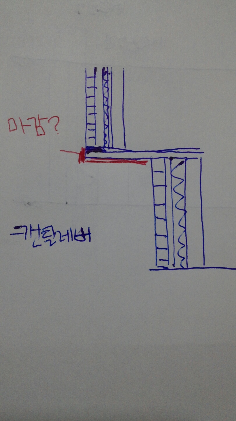 2) 콘크리트인 2층 바닥면을 어디까지 밖으로 뽑아야 할까요? ....(사진처럼 조적 앵글을 사용하기도 하더군요..)