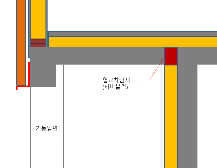 개념상 아래 선을 따라서 티비블럭의 발코니용 열교차단재가 적용하는 방식입니다.