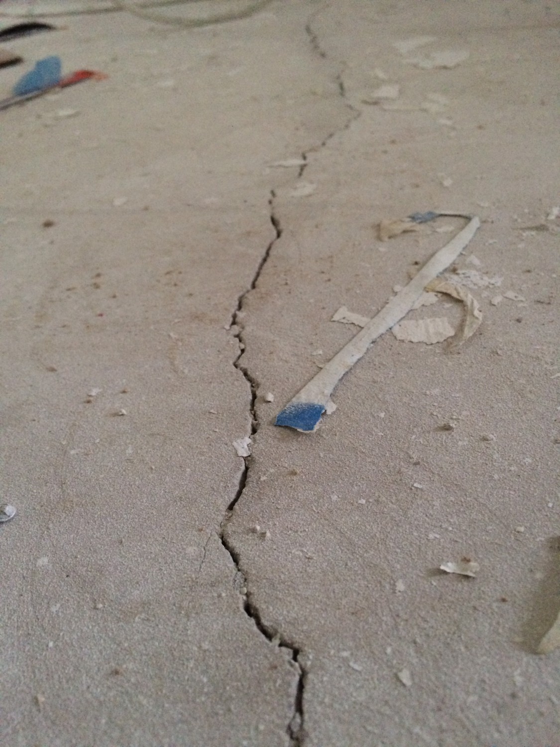 공동주택이라면 폭이 2~3mm 정도로 보여 지는 균열로 발전하기 까지는 기포콘크리트 위에 시멘트 모르타를 타설 한 후 최소 3개월 이상이 걸릴 것으로 여겨지며, 방바닥 마감재인 마룻널을 깔기 전 반드시 전용 실링재에 의한 균열보수를 합니다.