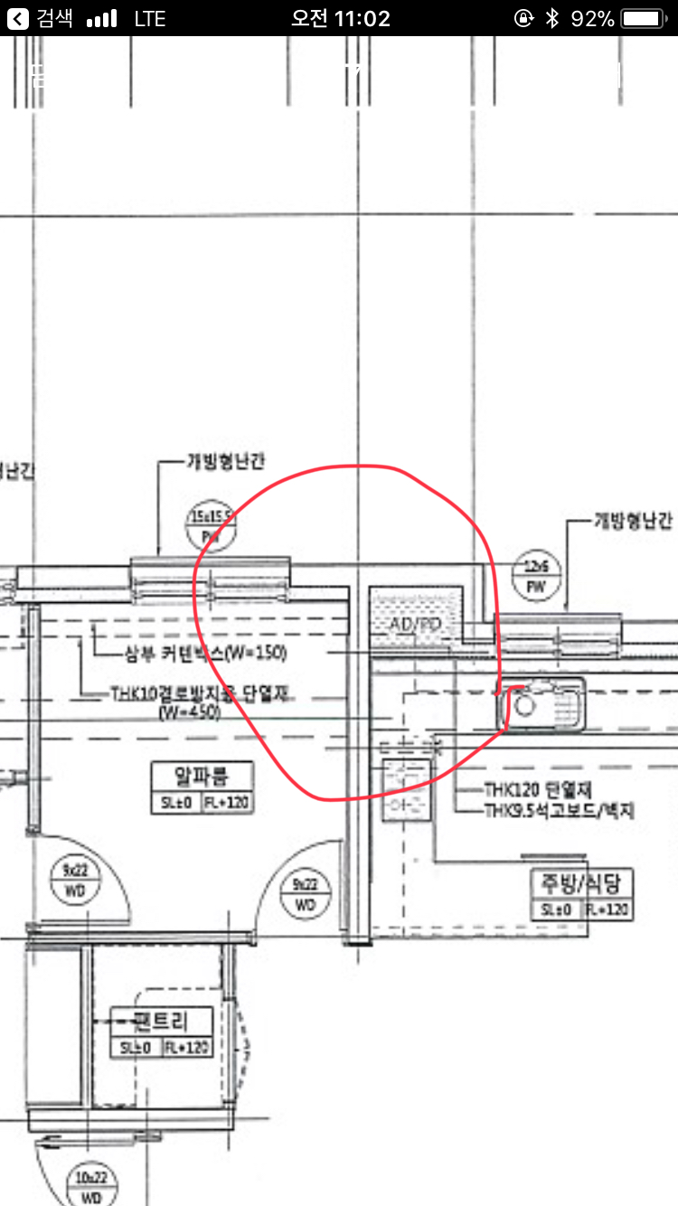 그럼 만약에 단열몰탈일 경우 도면에는 "결로방지재 w=450" 이라고 써 있는데요..