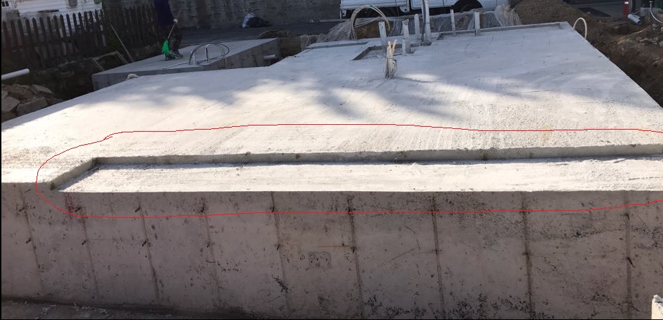 도면에 붉은 색으로 표시한 것처럼, 목구조의 토대목에서 기초가 다운되어야 합니다.
