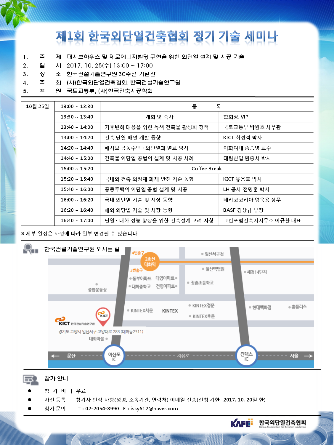금주 수요일 한국건설기술연구원에서 외단열관련 세미나가 있습니다.