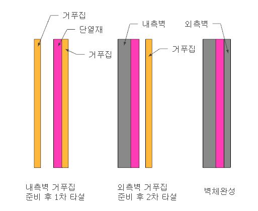 내측벽 - 안쪽폼 세우고 단열재 대고 바깥쪽 폼 세우고 타설