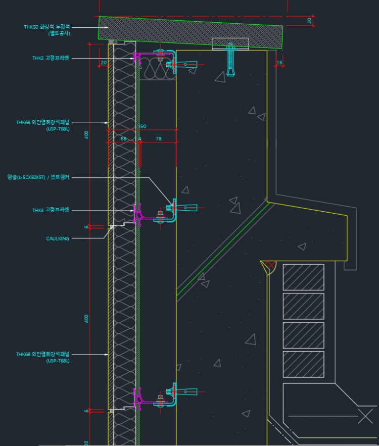 단면에서 창호와 파라펫 꺾이는 부분은 기존의 우레탄보드와 우레탄 폼으로 시공한다고 하는데 이부분에서 가장 문제가 생길 것 같은데 협회 및 선생님들의 고견이 궁금합니다. 감사합니다.