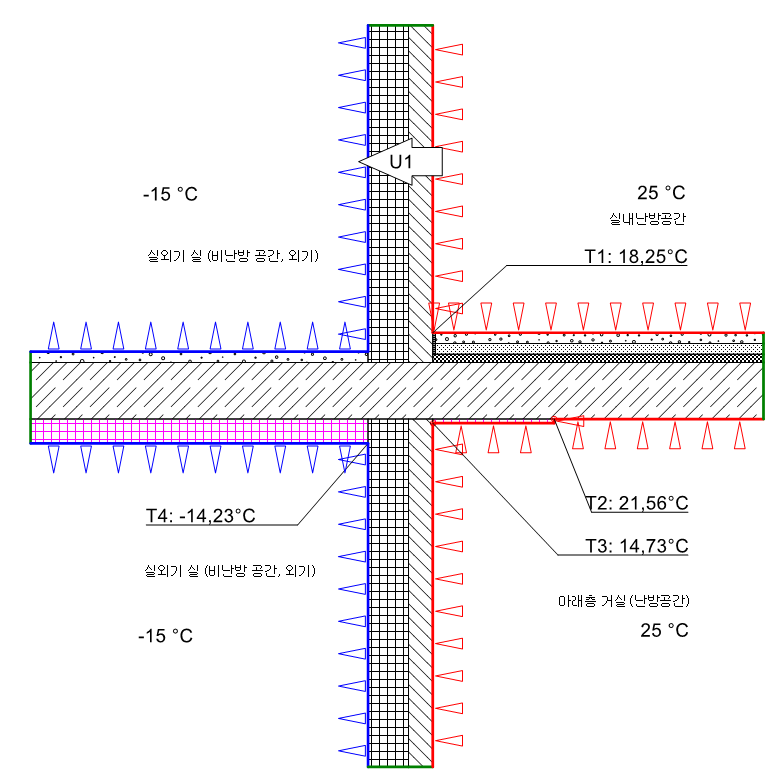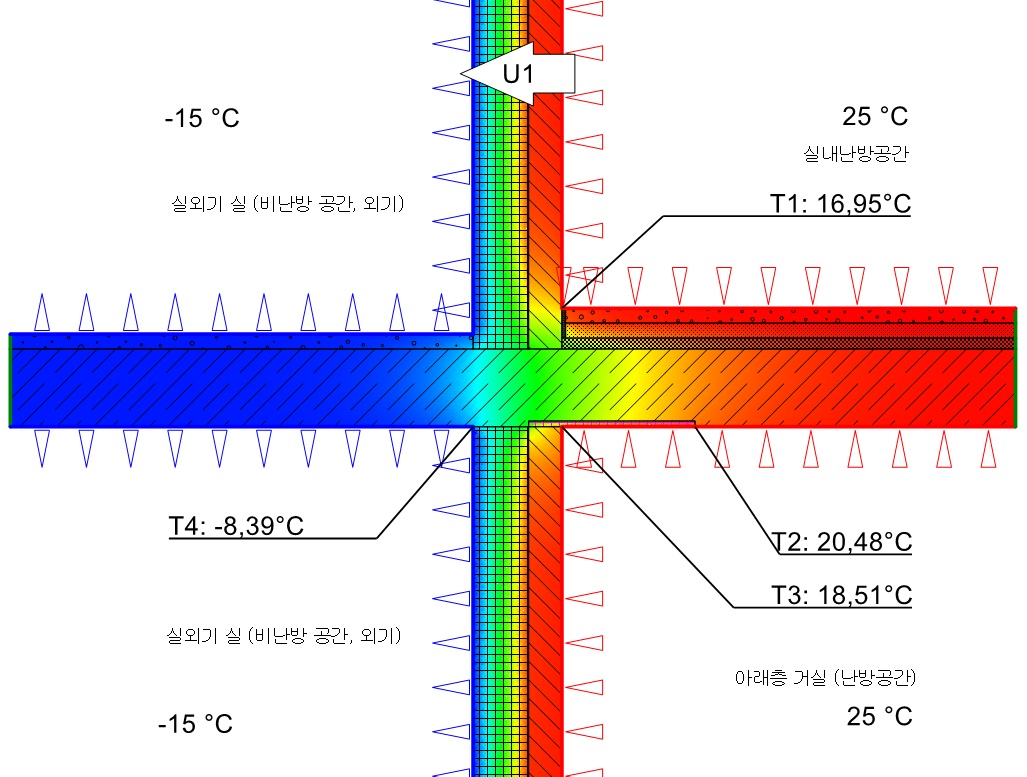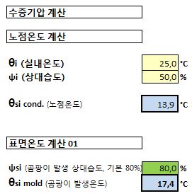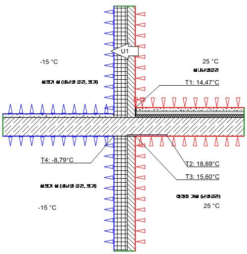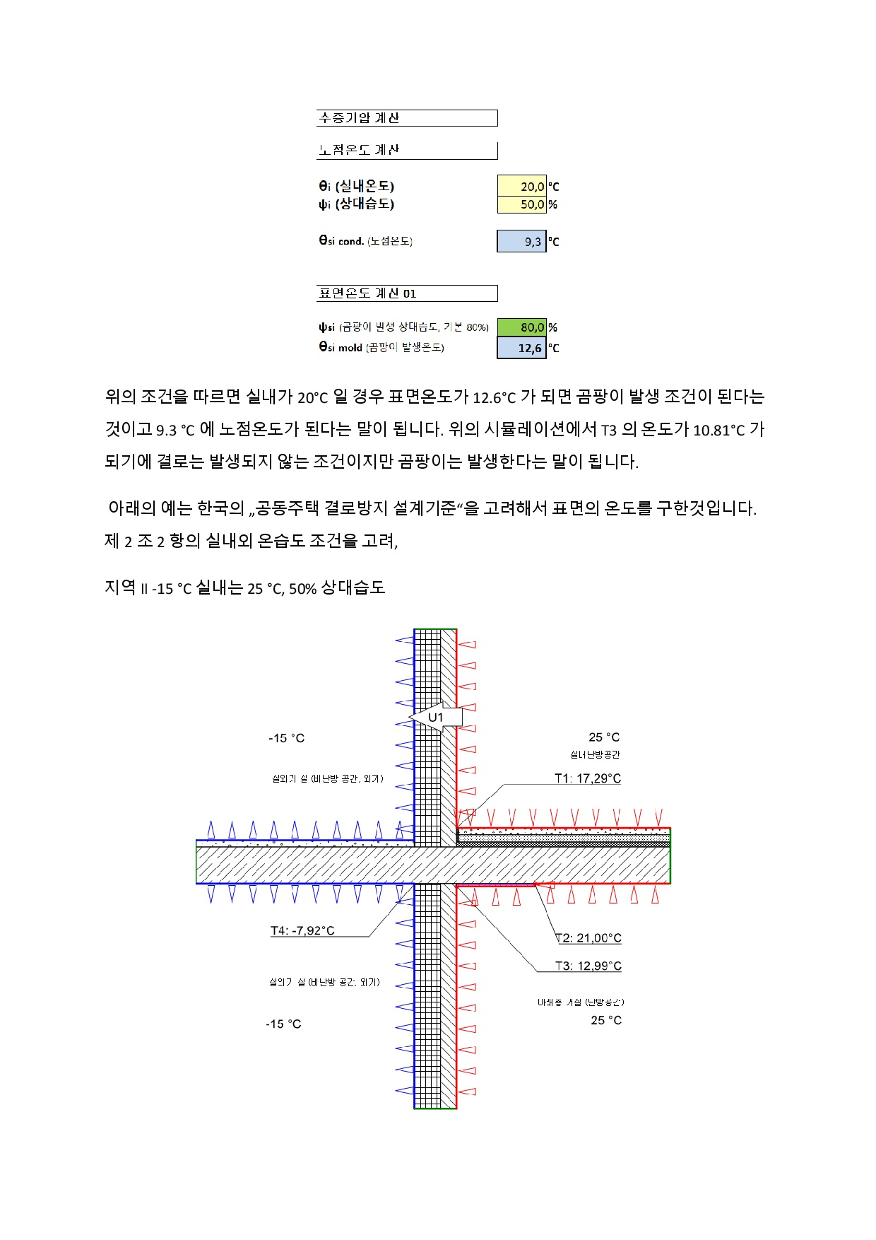 조건 : 지역II, 벽체접합부, 실외 -15C, 실내 +25C/ 습도50%