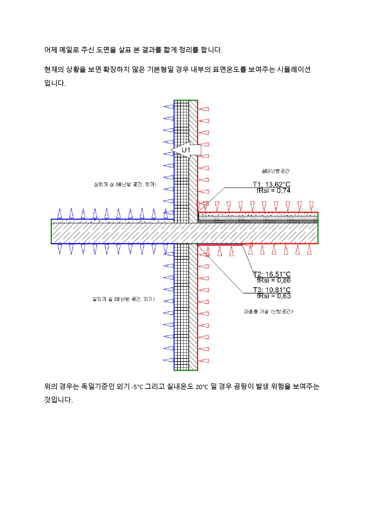 1.     3차원인 3개의 구조체가 만나는 구석부위의 표면온도는 더 낮다는 것과 그로인해 경계치인 0.7이하가 된다는 것이고 (2차원적인 해석에서는 0.7 이상이라고 할지라도)